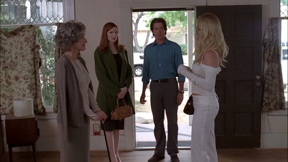 绝望的主妇第三季第九集,Edie带Bree及Orson和他的妈妈Hodge夫人参观一处房产,该房子座落在治安管理混乱和四处都是瘾君子和妓女等下三滥的管辖区。尽管房子破烂不堪,周边配套非常不利于常人居住,Edie为促成交易充分发挥其多年房屋经纪人的三寸不烂之舌对该房屋进行粉饰与美化,Orson及其母亲基于现有经济能力,双双决定有多大的能力,将就在此处安顿。怎耐有心里洁癖的Bree,实在难以忍受让未来婆婆居住在如此杂乱不堪的“蛮荒之地”,于是坚决打消了Hodge母子的念头,让Edie的房产经纪买卖就此泡汤。