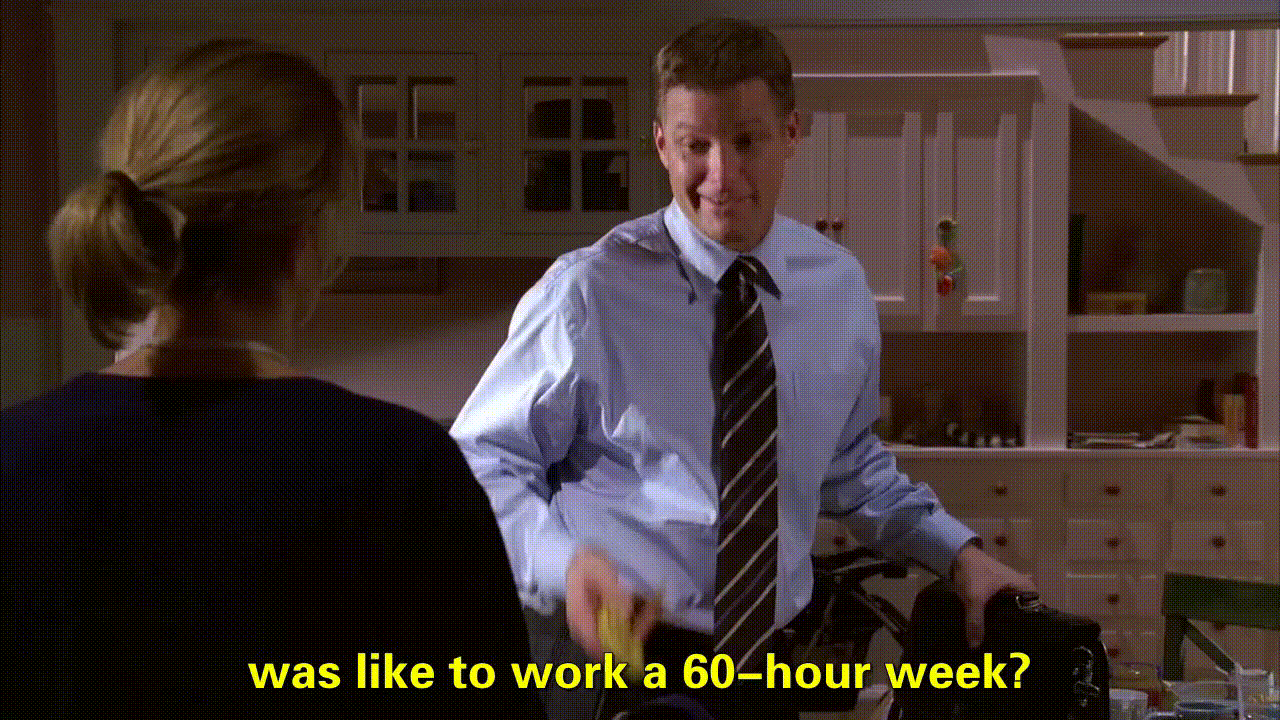 ——>> I mean, do you remember what it was like to work a 60-hour week? 还记得一周工作60小时的时候吗