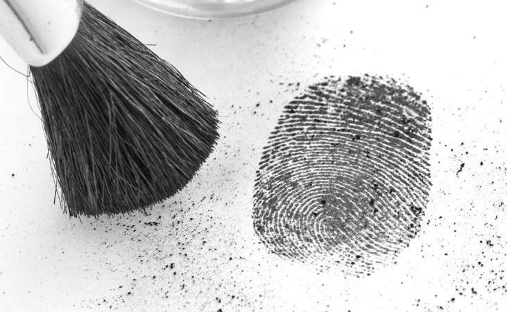 dust for fingerprints/prints:The process of dusting for fingerprints involves various methods intended to get the particles of the powder to adhere to residue left by friction ridge skin on the fingers, palms, or feet. … For example, dark coloured powders will show up a fingerprint far better on a light surface.